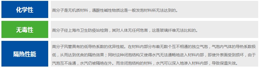 隔熱性能:高分子風(fēng)管具有的低導(dǎo)熱系數(shù)的優(yōu)異性能。在材料內(nèi)部分布著無數(shù)個互不相通的獨立氣泡,氣泡內(nèi)氣體的導(dǎo)熱系數(shù)極低,從而達到優(yōu)良的隔熱效果;同時這種閉泡結(jié)構(gòu)又使得水汽無法通暢地進入材料內(nèi)部。